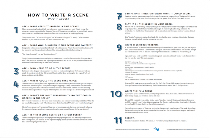 Informational John August – How to Write a Scene Date: October 9, 2023Author: sonnyboo 0 Comments Share this: Click to share on X (Opens in new window) X Click to share on Facebook (Opens in new window) Facebook Like Loading... Related
